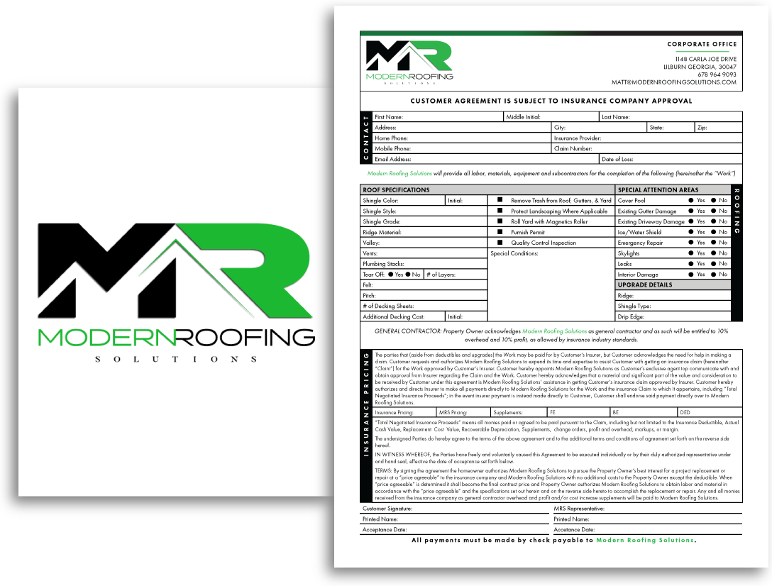 Modern Roofing Solutions wanted to rebrand with a new logo that invoked a more modern feeling, as their company name would suggest.
